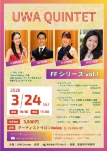 この度、東京都新宿区のアーティストサロン”Dolce”にて、Uwa Quintet Recital(ウワクインテットリサイタル)を3月24日(火)に開催することになりましたのでご案内申し上げます。